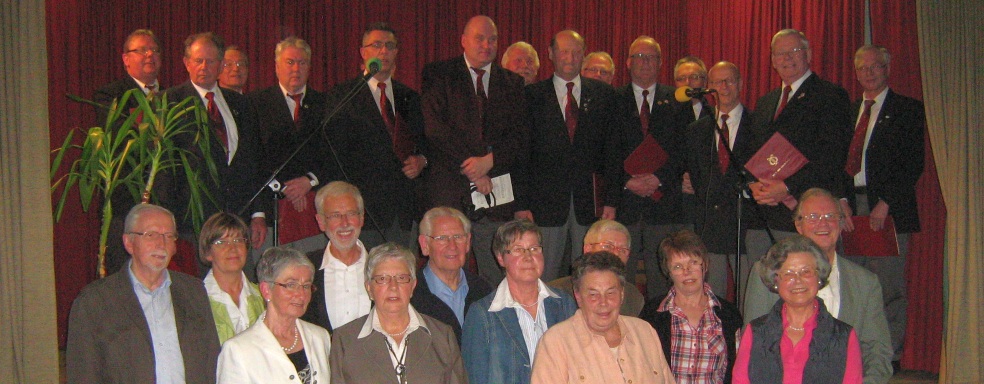 Foto: Der AK Eslohe mit dem AK Mundartpflege Brilon und dem Männerchor Concordia Scharfenberg beim Jubiläum „10 Jahre ,Do biste platt’ 2012“ in Scharfenberg.